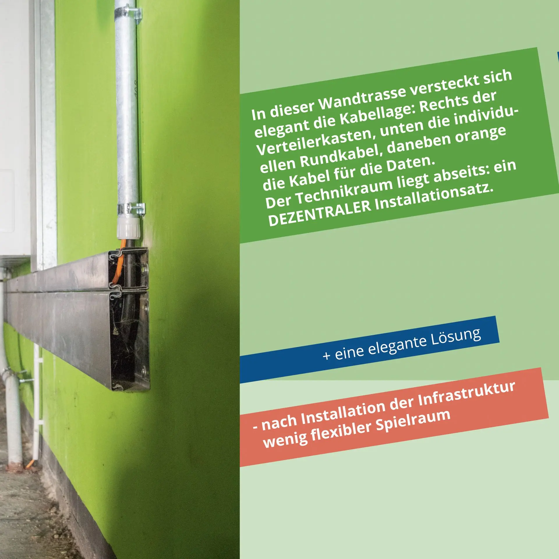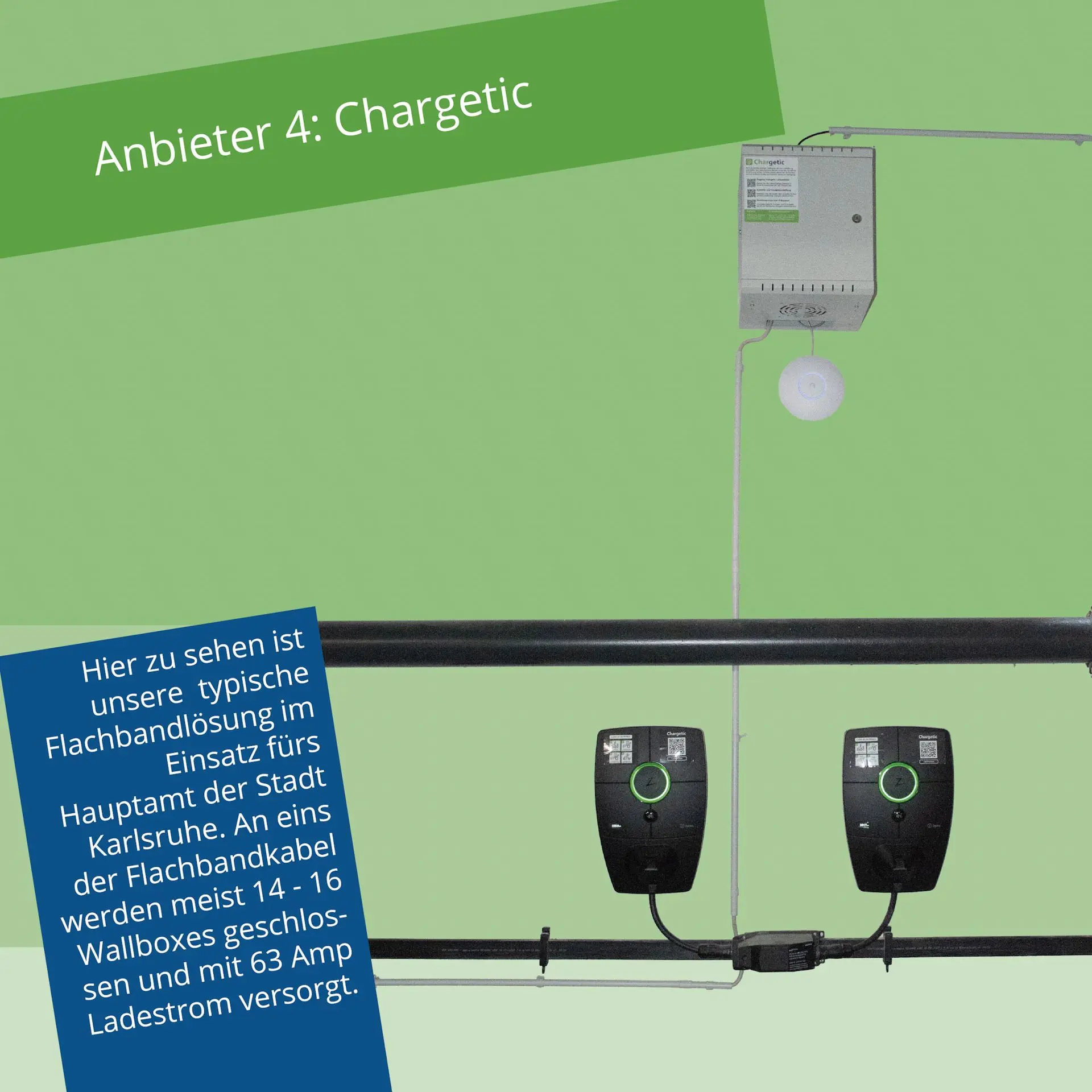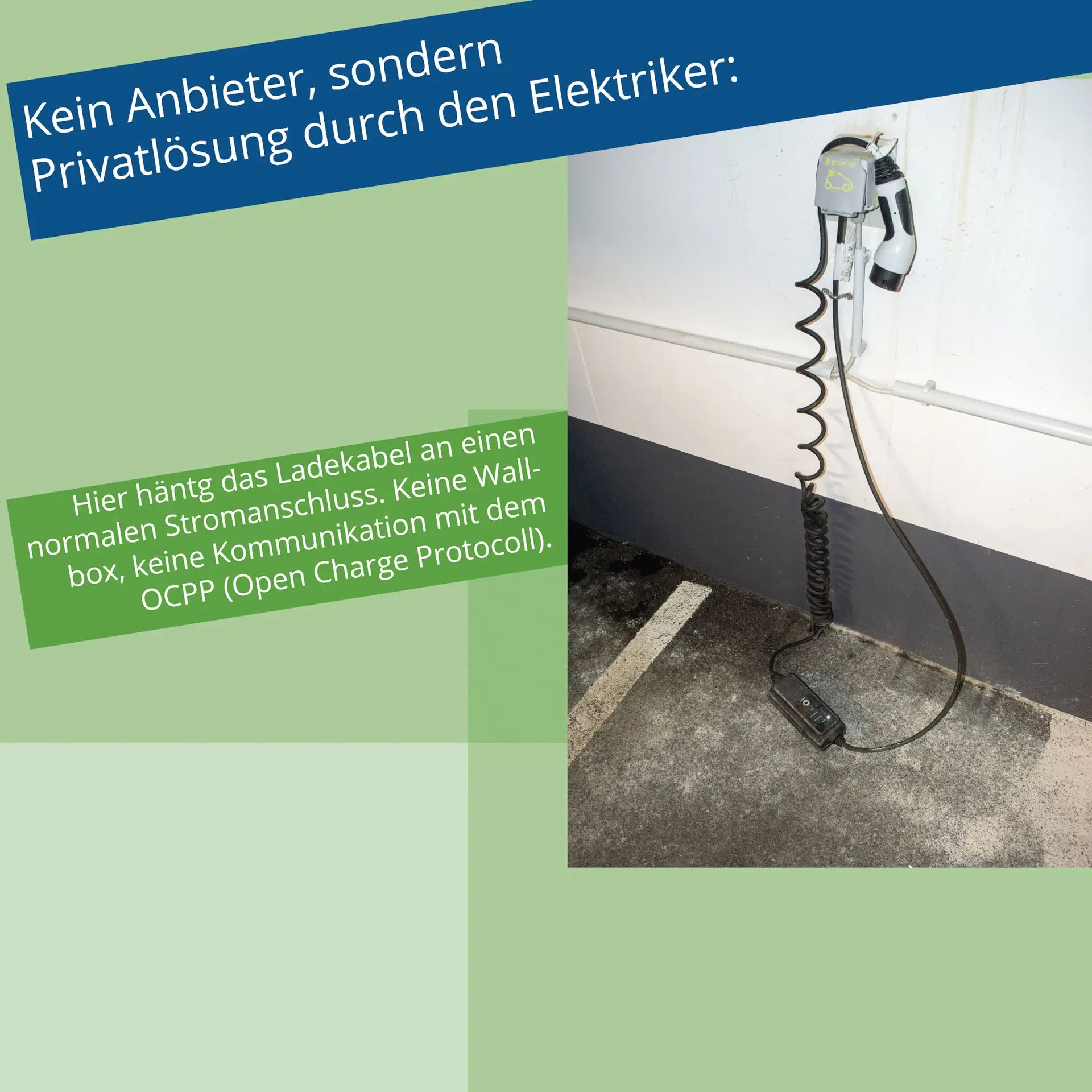Installation im Prozess. Dieses Foto bildet eine Tiefgarage ab, in der an der Decke die Stromleitungen laufen, die Ihr Auto laden werden. Dieses Foto ist aus dem Prozess der Installation, noch hängen hier nur die Rückplatten